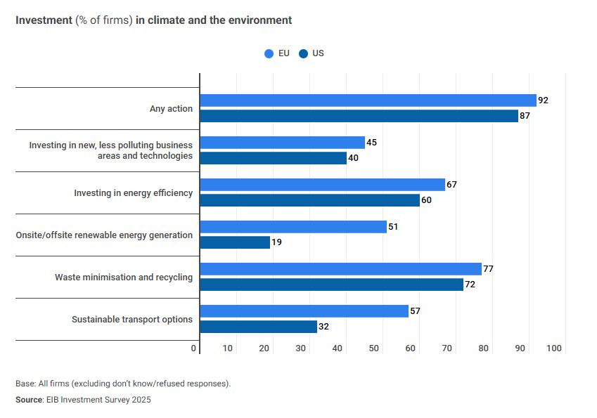 That imbalance says a lot about how European firms (Ireland included) are approaching the transition. We’re still framing decarbonisation as something to be managed, not necessarily leveraged. The survey’s language of “replacement investment” rather than expansion reinforces that instinct: capital flowing into efficiency upgrades, resilience measures, and compliance rather than growth bets on new green markets or regenerative business models.